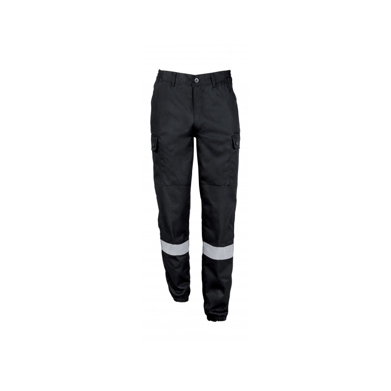 4 poches, ceinture élastiquée, bandes réfléchissantes, bas élastiqués